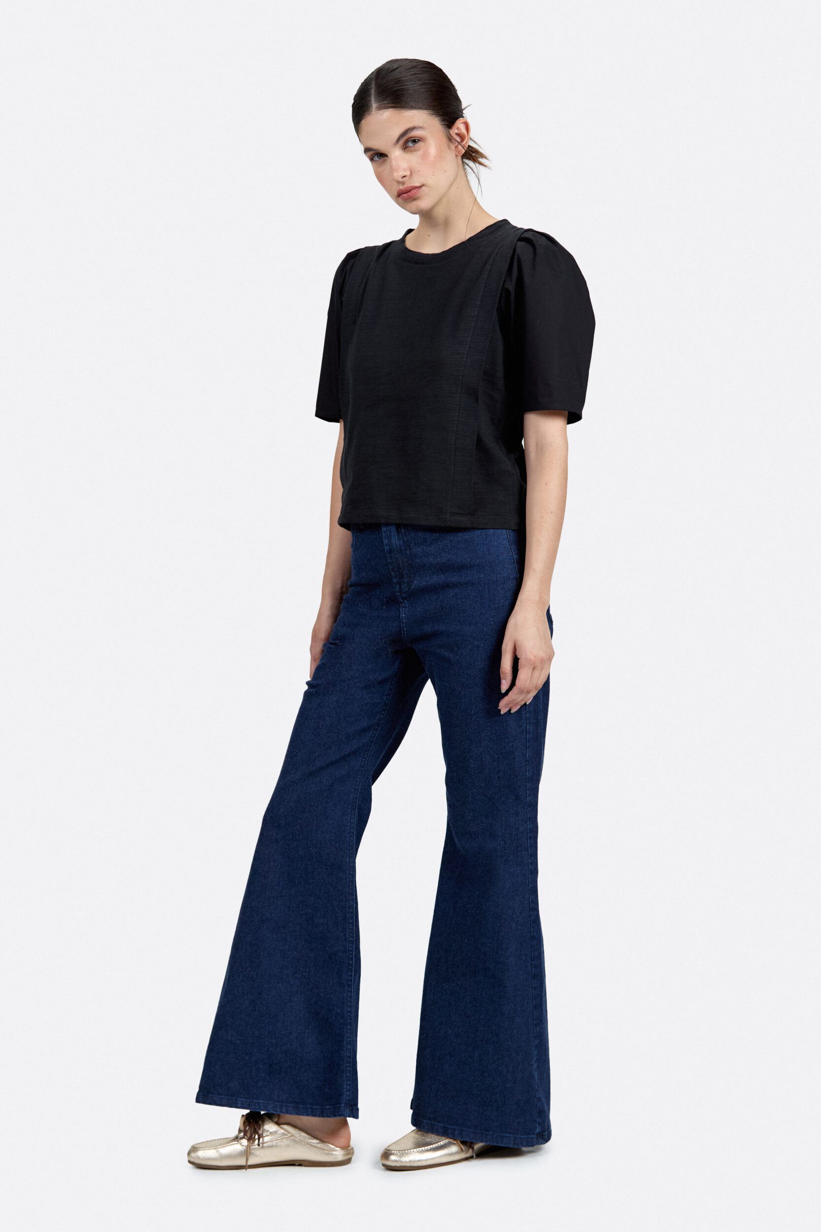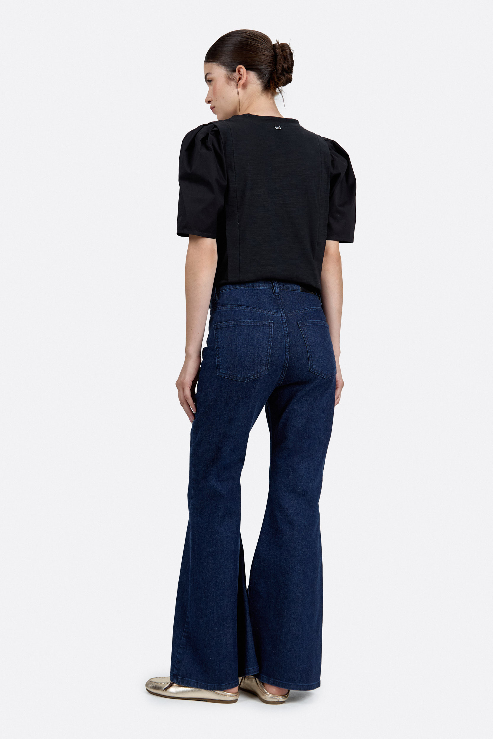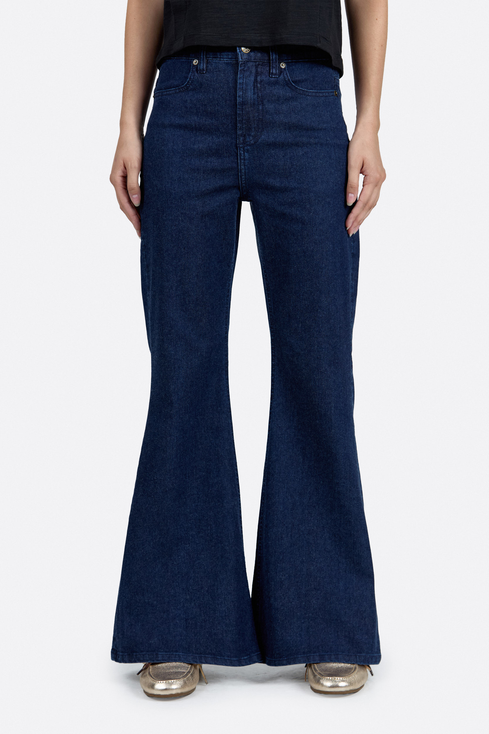 Jean confeccionado en denim de algodón elastizado. Fit bootcut, con cintura alta, largo regular y diseño 4 bolsillos. Lavado medio uniforme. El calce es adaptable según el talle elegido y el estilo que se quiera lograr.