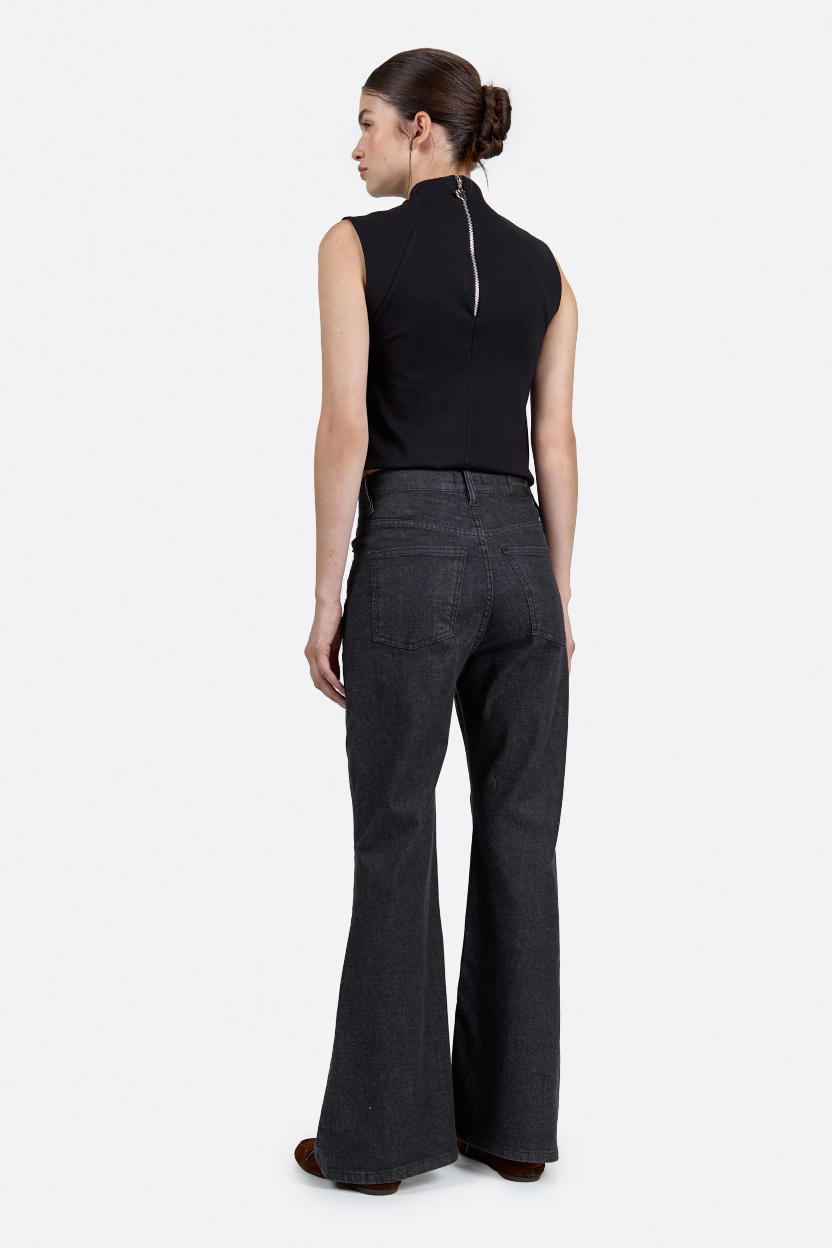 Jean confeccionado en denim de algodón elastizado. Fit bootcut, con cintura alta, largo regular y diseño 4 bolsillos. Lavado oscuro uniforme. El calce es adaptable según el talle elegido y el estilo que se quiera lograr.